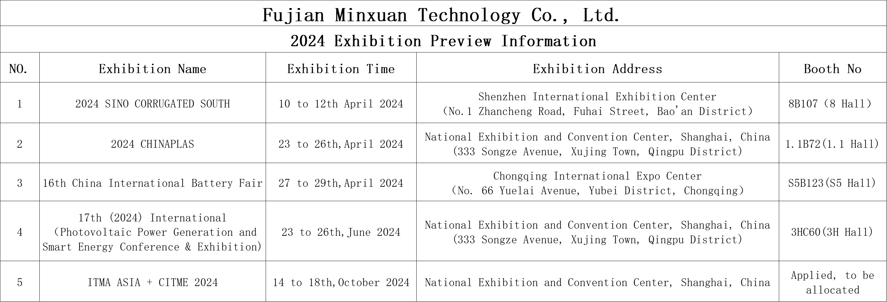 Dear customers and friends: The following is the exhibition information of our company's Minxuan Technology in 2023. At that time, we sincerely invite you to visit the company's booth for guidance.